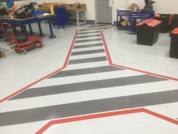 Once client moved equipment into place we returned and applied safety walkways around the factory.
