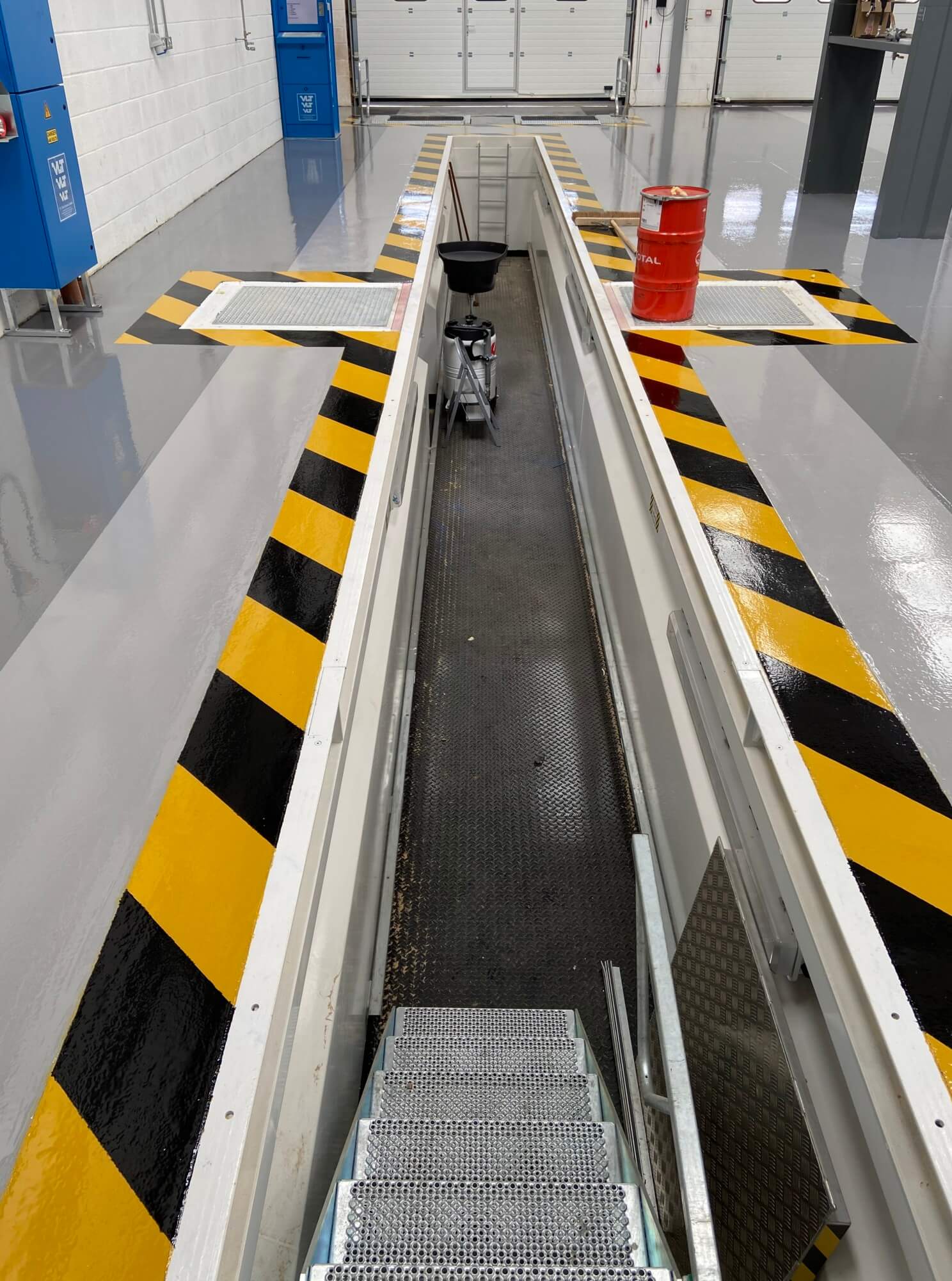Resin flooring in the automotive industry not only includes commercial garages, but it also includes the resin line marking which is often used. This is especially in instances such as MOT bay floor areas where certain resin floor hatching is needed for health and safety reasons. Resin line marking is also used for vehicle bays and to create gangways to separate car and pedestrian use.